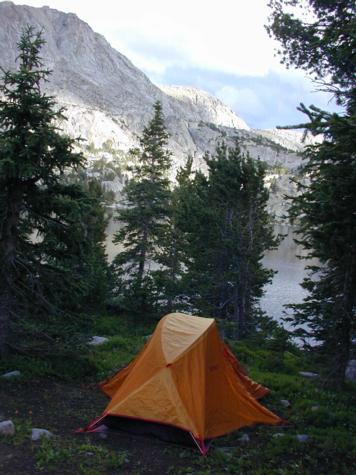 We find a great camp spot along the banks of Valentine Lake (10,400 ft).