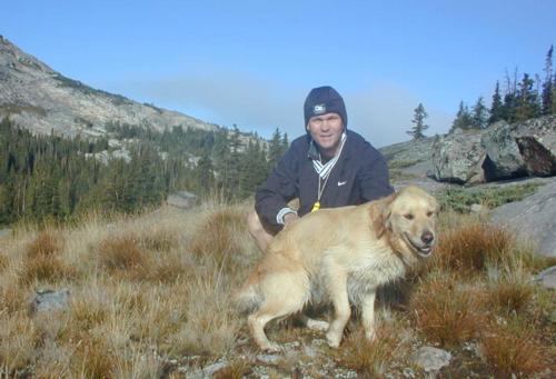Cody stops briefly from chasing his 151st chipmunk to get in the picture.